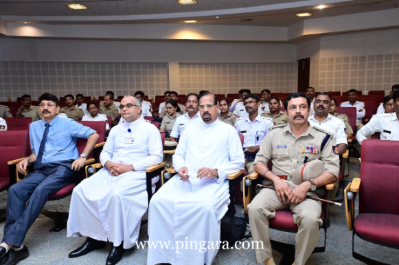 Rev. Fr Faustine, welcomed the Chief Guest of the day, K. Ravi Shankar (KSPS), DCP (Crime & Traffic), with a sapling. A care package kit containing Father Muller Homoeopathic Pharmaceutical Division products aimed at helping manage heat-related discomfort and body pain commonly experienced during long hours of duty, was handed over by the Director FMCI to the Chief Guest.