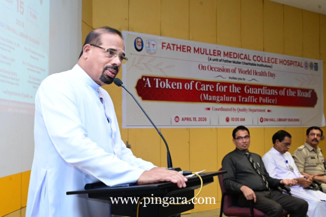 Mangalore: Father Muller Medical College Hospital (FMMCH) observed World Health Day 2026 with the theme “Together for Health: Stand with Science.” The highlight of the event was a health awareness programme titled “A Token of Care for the Guardians of the Road,” organized by the Quality department for the Mangalore Traffic Police personnel on 15th April 2026. With over 150 Traffic police participating in this ‘self-health’ awareness initiative.