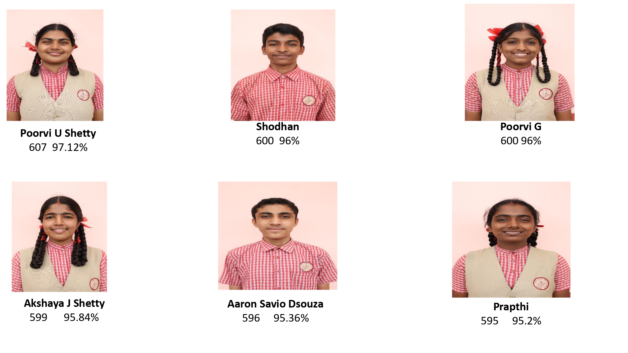 Poorvi Shetty emerged as the school topper, scoring 607 marks with an outstanding 97.12%.