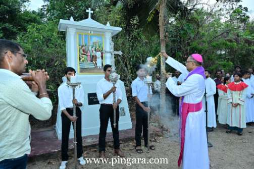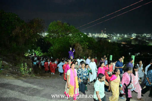 Following the Mass, a sea of pilgrims undertook the steep, prayerful ascent of the Holy Hill. This year’s Way of the Cross featured meditative reflections authored by Rev. Fr Vincent Sequeira, Diocesan Secretary for the Commission for Bible. In a poignant display of communal unity, the stations were led by a diverse group including the Bishop, priests, religious, lay faithful, and youth.