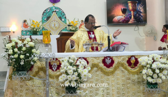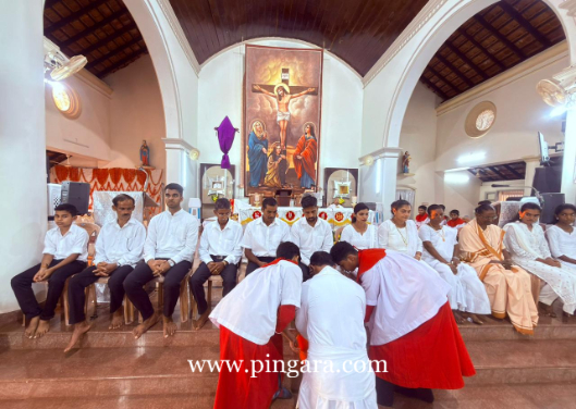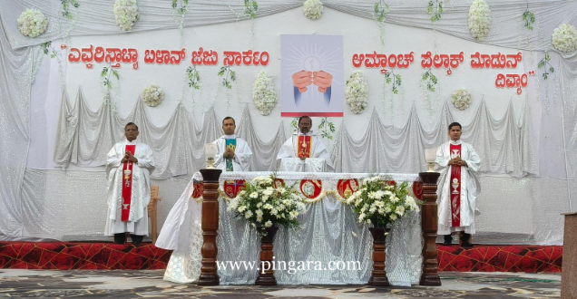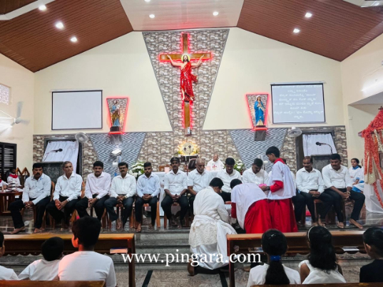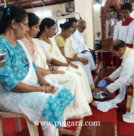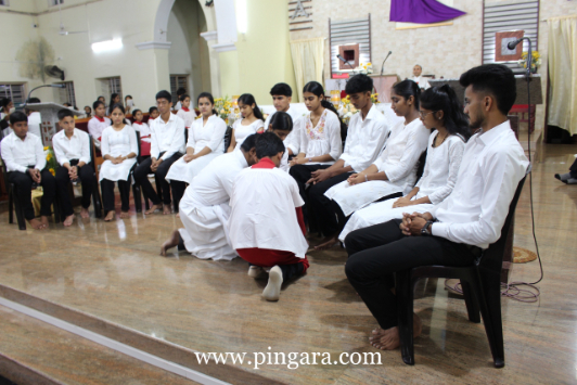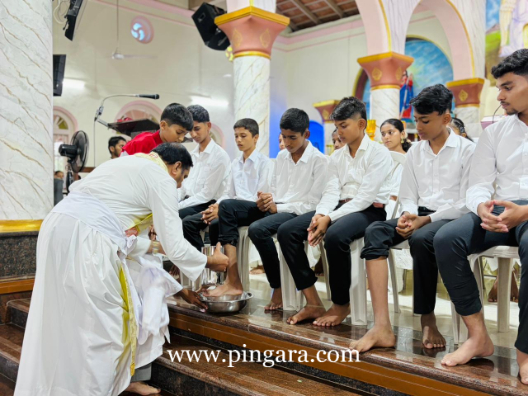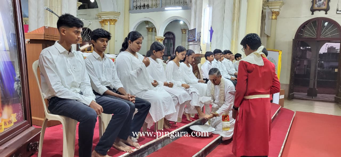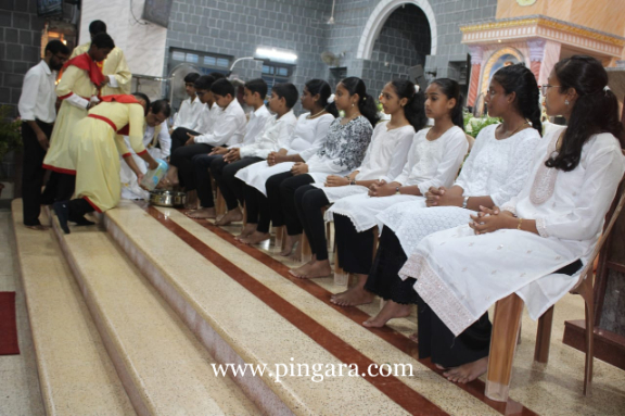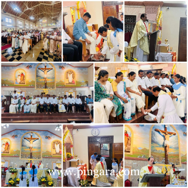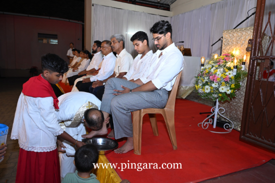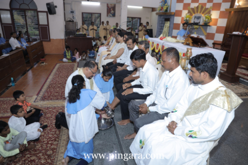 The solemn Mass of the Lord’s Supper, commemorating the institution of the Holy Eucharist and the Priesthood, was concelebrated by Rev. Fr Stany Pinto, Parish Priest of Mukka Church, and Rev. Fr Praveen D’Souza.