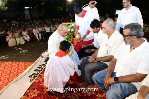 During the ‘Mandatum’ (washing of the feet), Bishop Peter Paul Saldanha washed the feet of twelve parishioners, mirroring the humility of Jesus who washed the feet of His apostles during the Last Supper. This ritual serves as a reminder of the call to humility and mutual service within the Christian community.