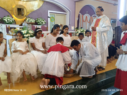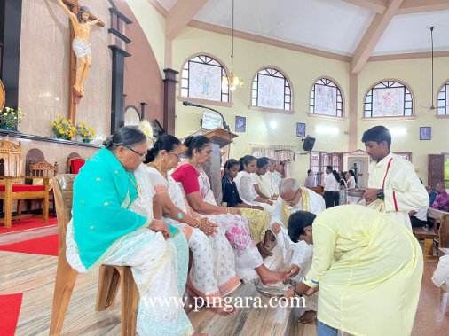 Simultaneously, across the 125 parishes of the Diocese, parish priests performed the washing of the feet with a special emphasis. In a meaningful gesture marking the ‘Year of Children’ currently observed in the Diocese of Mangalore, many priests washed the feet of children, symbolizing the Church’s commitment to nurturing the younger generation in the spirit of Christ’s humility and care.