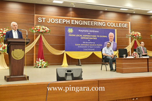 The Ambassador’s visit was marked by deep institutional engagement across the city. He began his tour on Tuesday morning at St Joseph Engineering College, Vamanjoor, where he held an hour-long interactive dialogue with students led by Principal Dr. Rio D’Souza. This was followed by an afternoon session at St Aloysius (Deemed to be University), where he engaged with faculty and students alongside Vice Chancellor Rev. (Fr.) Dr. Praveen Martis, SJ.
