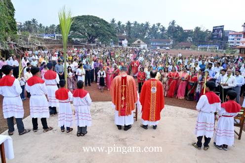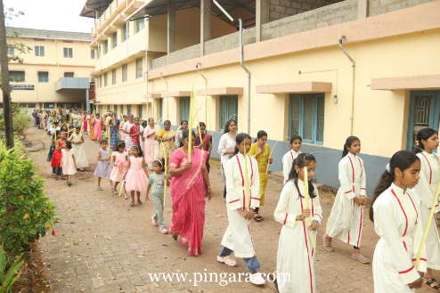 At the Holy Spirit Church, Mukka, in the Surathkal deanery, the main celebrations were led by the Bishop of Mangalore, Most Rev. Dr Peter Paul Saldanha. Clad in red vestments—symbolizing the passion and royalty of Christ—the Bishop blessed the palm leaves and led the congregation in a procession, recreating the biblical entry of Jesus into the Holy City. Fr Stany Pinto, parish priest, Mukka and Fr Praveen Dsouza Designate director of ICYM, Mangalore were present as concelebrants.