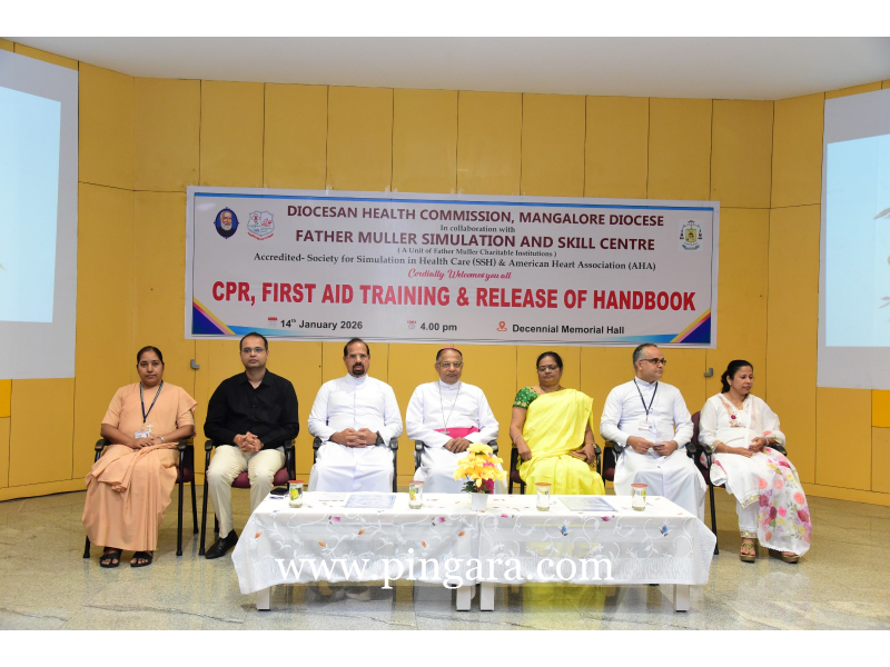 Mangalore: The Diocesan Health Commission of Mangalore Diocese, together with Father Muller Simulation and Skill Centre (FMSSC), a unit of Father Muller Charitable Institutions (FMCI), organized a comprehensive CPR and First Aid training programme culminated with the release of a specialized handbook in Konkani language on first aid on Wednesday, 14th January 2026 at the Decennial Memorial Hall on 14 January 2026.