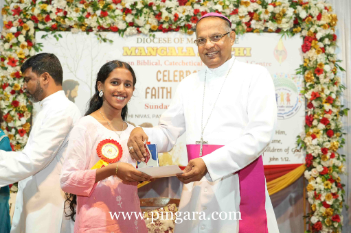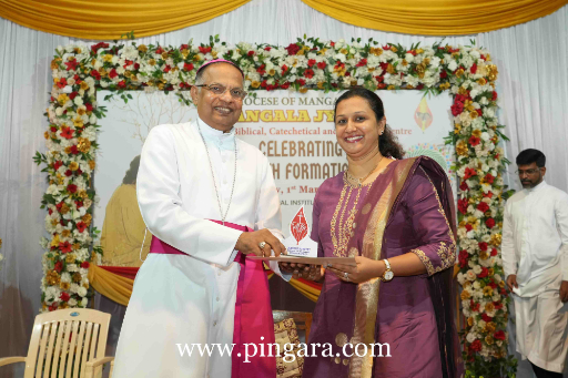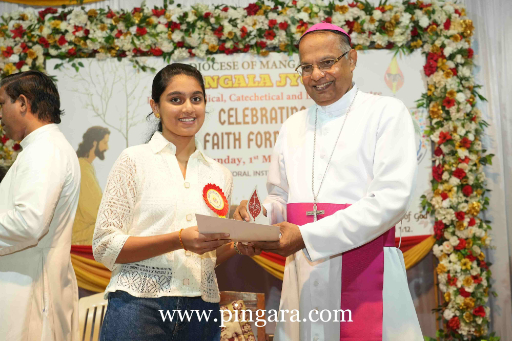 Most Rev. Dr Peter Paul Saldanha, Bishop of Mangalore, presided over the programme. In his presidential address, the Bishop emphasised the critical importance of spiritual grounding for the youth. “In a world increasingly filled with distractions, it is vital that we remain completely focused on Christ,” the Bishop stated. He urged the students to be enlightened by the Word of God and to actively serve as beacons of hope in society.