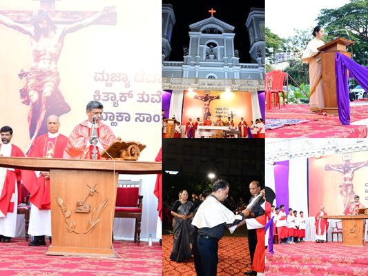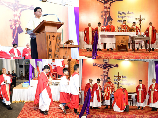 Mangaluru, April 03: Milagres church celebrated Good Friday to meditate and Ponder on the Love of God manifested to the Humanity through His Son Jesus. It’s the day whereby christ gave himself totally on the Cross which manifests his deep and unfathomable love. It’s Love until the end of his life on the Cross.