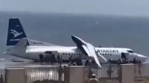 No one was injured. The plane, operated by Starsky Aviation, was carrying 50 passengers and five crew members. The airline’s CEO, Ahmed Noor, confirmed that everyone had been evacuated safely. The plane skidded off the runway and came to rest near the shore of the Indian Ocean.