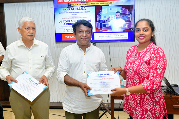 Mangaluru: In a significant move to bridge the digital divide for the local business community, Rachana, the Catholic Chamber of Commerce and Industry, organized an intensive day-long workshop titled ‘AI Tools for Business and Productivity’ at the Mangalore Club on Tuesday, April 15. The session, aimed at demystifying Artificial Intelligence, emphasized that while the technology is a formidable force, it serves best as an ‘intelligent assistant’ rather than a replacement for human ingenuity.