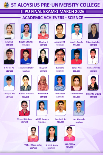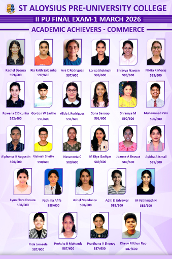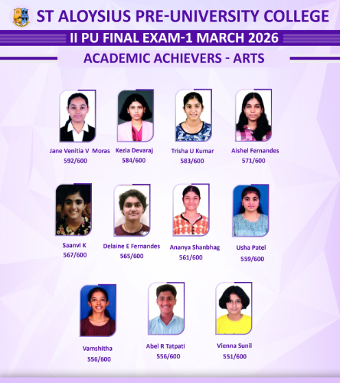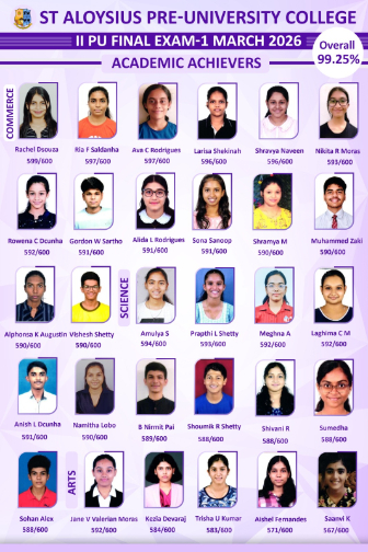 Mangalore: St Aloysius Pre-University College has once again upheld its tradition of academic excellence by recording an outstanding 99.25% pass percentage in the II PUC Board Examinations 2026.