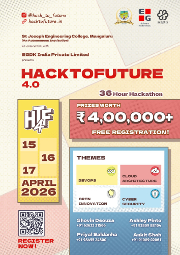 Mangaluru: St. Joseph Engineering College (SJEC), in continued collaboration with EG India Private Limited, is set to host HackToFuture 4.0, a premier 36-hour overnight hackathon scheduled from the evening of April 15 to the morning of April 17, 2026, at its campus in Mangaluru.