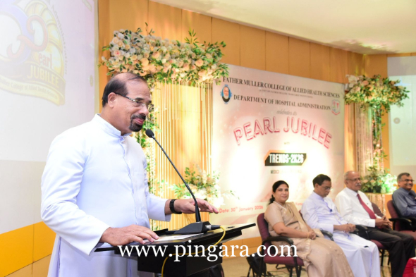 A significant highlight of the inaugural ceremony was the unveiling of the Pearl Jubilee logo, specially designed by Manju M, II Year MHA student. She was felicitated for her creative contribution by Dr Michael Sathumayor, Administrator, Father Muller Medical College Hospital.