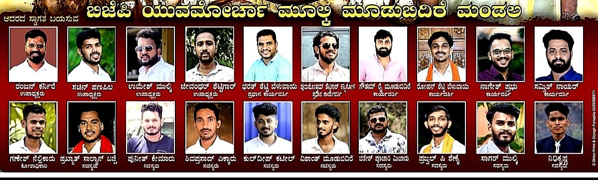 ಭಾರತೀಯ ಜನತಾ ಪಾರ್ಟಿಯ ಮೂಲ್ಕಿ(ಬಿಜೆಪಿ) ಮೂಡುಬಿದಿರೆ ಮಂಡಲದ ಯುವ ಮೋರ್ಚಾ ವಿಭಾಗದ ಅಧ್ಯಕ್ಷರಾಗಿ ಕುಮಾರ್ ಪ್ರಸಾದ್ ಕೊಟ್ಟಾರಿ, ಉಪಾಧ್ಯಕ್ಷರುಗಳಾಗಿ ಜೀವನ್ಧರ್ ಶೆಟ್ಟಿಗಾರ, ರಂಜನ್ ಕರ್ನಿರೆ, ಉಮೇಶ್ ಮುಲ್ಕಿ, ಸಚಿನ್ ಪಣಪಿಲ, ಪ್ರಧಾನ ಕಾರ್ಯದರ್ಶಿಗಳಾಗಿ ಭರತ್ ಶೆಟ್ಟಿ ಬಿಳುವಾಯಿ ಹಾಗೂ ಪುರುಷೋತ್ತಮ್ ಶೆಟ್ಟಿಗಾರ್ ಕಿನ್ನಿಗೋಳಿ ಆಯ್ಕೆಯಾಗಿರುತ್ತಾರೆ. ಕಾರ್ಯದರ್ಶಿಗಳಾಗಿ ಗೌತಮ್ ರೈ ಮೂಡುಬಿದಿರೆ, ರೋಷನ್ ಶೆಟ್ಟಿ ಬೆಳುವಾಯಿ, ನಾಗೇಶ್ ಪ್ರಭು, ಸಮ್ವಿತ್ ನಾಯರ್, ಕೋಶಾಧಿಕಾರಿಯಾಗಿ ಗಣೇಶ್ ನೆಲ್ಲಿಕಾರು ಆಯ್ಕೆಯಾಗಿದ್ದಾರೆ. ಪ್ರಖ್ಯಾತ ಸಾಲಿಯಾನ್ ಬಜಪೆ, ಪುನೀತ್ ಕೇಮಾರು, ಶಿವಪ್ರಸಾದ್ ಎಕ್ಕಾರು, ಕುಲದೀಪ್ ಕಟೀಲು, ವಿಷಾಂತ್ ಮೂಡುಬಿದಿರೆ, ಜಿತೇಶ್ ಪೂಜಾರಿ ಮಿಜಾರು, ಪ್ರಜ್ವಲ್ ಶಣೈ, ಸಾಗರ್ ಮುಲ್ಕಿ, ಮತ್ತು ನಿಧಿ ಕೃಷ್ಣ ಸದಸ್ಯರುಗಳಾಗಿ ಸಮಿತಿಗೆ ಆಯ್ಕೆಯಾಗಿರುತ್ತಾ