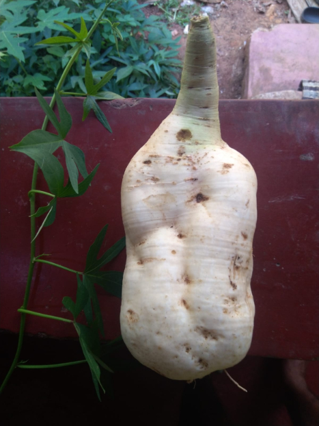 ನಮ್ಮ ಮಲೆನಾಡಿನ ಪ್ರದೇಶದಲ್ಲಿ ಬಹುತೇಕ ಎಲ್ಲೆಡೆ ಕೈತೋಟ ತರಕಾರಿ ಇರುವುದೇ ಆಗಿದೆ ಬಿಡಿ. ಆದರೆ ಇದರ ಕುರಿತು ಮನೆ ಹಿತ್ತಲು ಈಗ ಕಣ್ಮರೆಯಾಗಿದೆ ತರಕಾರಿಗೆ ಪೇಟೆ ಪಟ್ಟಣವೇ ನಮ್ಮಲ್ಲೇ ಮಾಡಿದರು ಈಗ ಕಾಡು ಪ್ರಾಣಿಗಳ ಉಪಟಳ ದಿಂದ ರಕ್ಷಿಸುವುದೇ ಕಷ್ಟ ಹಾಗಿದ್ದಲ್ಲು ಈ ಸಲ ಗೆಣಸು ಕೃಷಿಯಲ್ಲಿ ಚಿಕ್ಕ ಚಿಕ್ಕ ಗಡ್ಡೆಗಳಾಗುವುದು ಸಾಮಾನ್ಯ ಅದರಲ್ಲೂ ಒಂದುವರೆ ಕೆಜಿ ಗಾತ್ರದ್ದು ಬಾಟಲಿನಂತೆ ಗದೆಯಂತೆ ಇದ್ದು ಒಂದು ಕೆಜಿಯ ತೆಂಗಿನಕಾಯಿಯ ಗಾತ್ರದಲ್ಲೂ ಬೆಳಿಗ್ಗೆ ಗೆಣಸು ಮೂಡಿಬಂದಿದ್ದು ಸೋಜಿಗವೇ. ಈ ಹಿಂದೆ ಬಾತುಕೋಳಿ ರೂಪದಲ್ಲೂ ಮೂಡಿಬಂದಿತ್ತು ಯುಗಯುಗಾದಿ ಬಂದಿದೆ ಹೊಸ ಬೆಳಕಾಗಿ ನಾವು ಚೇತನದ ನವ ಪ್ರಭೆಯಾಗಿ ಬೇವು ಬೆಲ್ಲದ ಸಿಹಿ ಕಹಿ ರಸದಲ್ಲಿ ಬಾಳಿನ ಅರ್ಥ ಅರಿವಾಗಲಿ ಎಂಬಂತೆ ಪ್ರಕೃತಿಯ ಚಿಗುರು ಹೂವು, ಕಾಯಿ ಹಣ್ಣುಗಳಲ್ಲಿ ಮನೆ ಮನದಲ್ಲಿ ಸಂತೋಷ ತುಂಬಿಸುವ ಕೆಲಸವಾಗಿದೆ. ಪರಾಭವ ಸಂವತ್ಸರ ಸ್ವಾಗತಿಸೋಣ.