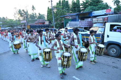 ಈ ಮೆರವಣಿಗೆಯಲ್ಲಿ ಕೇರಳದ ಚೆಂಡೆ ವಾದ್ಯಗಳು ವಿಶೇಷ ಆಕರ್ಷಣೆಯಾಗಿದ್ದವು. ಭಜನಾ ಮಂಡಳಿಗಳ ಭಕ್ತಿಗೀತೆಗಳು ಹಾಗೂ ಸಾಂಪ್ರದಾಯಿಕ ನೃತ್ಯಗಳು ಮೆರವಣಿಗೆಯ ಸೊಬಗು ಹೆಚ್ಚಿಸಿತು. ಕಾಲೇಜು ವಿದ್ಯಾರ್ಥಿಗಳು, ಎನ್‌ಸಿಸಿ ವಿದ್ಯಾರ್ಥಿಗಳು ಮತ್ತು ಊರಿನ ಪ್ರಮುಖರು ಮೆರವಣಿಗೆಗೆ ಸಾಥ್ ನೀಡಿ ಕಾರ್ಯಕ್ರಮವನ್ನು ಮತ್ತಷ್ಟು ವೈಭವಮಯಗೊಳಿಸಿದರು.