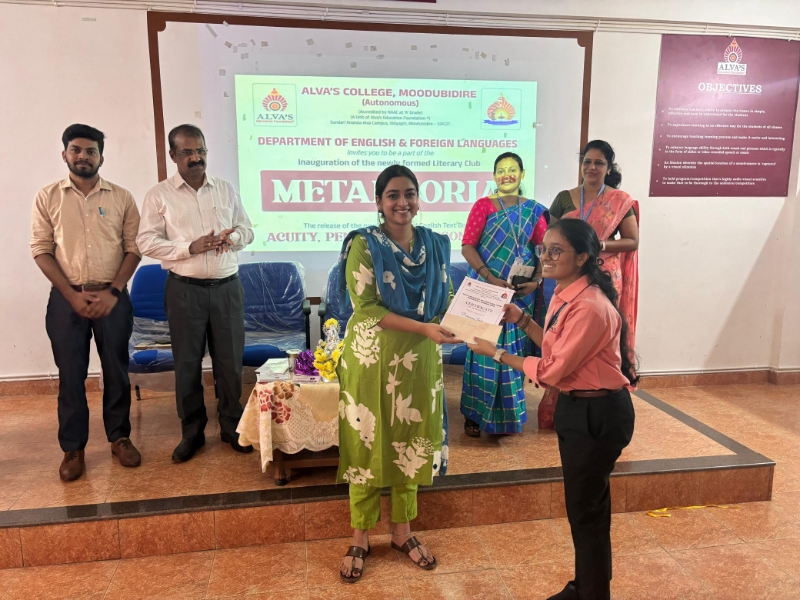 ಮೂಡುಬಿದಿರೆ: ಆಳ್ವಾಸ್ ಕಾಲೇಜಿನ ಇಂಗ್ಲೀಷ್ ಮತ್ತು ವಿದೇಶಿ ಭಾಷೆಗಳ ವಿಭಾಗದ ಸಾಹಿತ್ಯಿಕ ಸಂಘ ‘ಮೆಟಾಫೋರಿಯಾ’ದ ಉದ್ಘಾಟನೆ ಹಾಗೂ ವಿಭಾಗದ ಹೊಸ ಪಠ್ಯಪುಸ್ತಕಗಳಾದ ಇಕ್ವಿಟಿ, ಪೆನಾಮ್ಬç, ರೆಸೊನೆನ್ಸ್ಸ್ ಬಿಡುಗಡೆ ಸಮಾರಂಭ ಕಾಲೇಜಿನ ಆಡಿಯೋ–ವಿಜುವಲ್ ಹಾಲ್ನಲ್ಲಿ ಶುಕ್ರವಾರ ನಡೆಯಿತು.