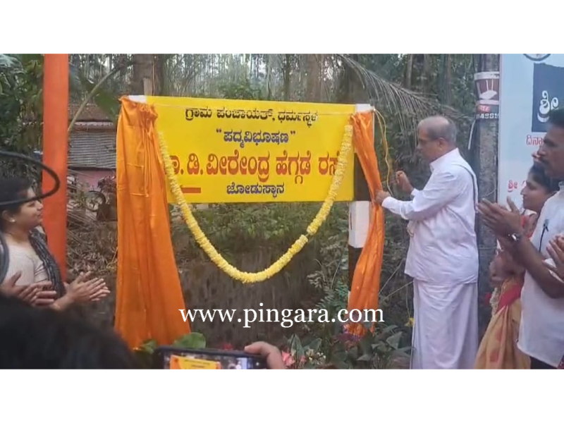 ಧರ್ಮಸ್ಥಳ: ಬೆಳ್ತಂಗಡಿ ತಾಲೂಕು ಧರ್ಮಸ್ಥಳ ಗ್ರಾಮದ ಜೋಡುಸ್ಥಾನ ರಸ್ತೆಯನ್ನು ಸಾರ್ವಜನಿಕರ ಬೇಡಿಕೆಯಂತೆ ಪದ್ಮವಿಭೂಷಣ ಡಾ. ಡಿ. ವೀರೇಂದ್ರ ಹೆಗ್ಗಡೆ ರಸ್ತೆ ಎಂದು ಧರ್ಮಸ್ಥಳ ಗ್ರಾಮ ಪಂಚಾಯತ್ ಅಧ್ಯಕ್ಷರಾದ ವಿಮಲಾ ಇವರ ಅಧ್ಯಕ್ಷತೆಯಲ್ಲಿ ಶ್ರೀ ಕ್ಷೇತ್ರ ಧರ್ಮಸ್ಥಳ ಶ್ರೀ ಡಿ ಹರ್ಷೇಂದ್ರ ಕುಮಾರ್ ರವರು ನಾಮಫಲಕವನ್ನು ಅನಾವರಣ ಮಾಡಿದರು.