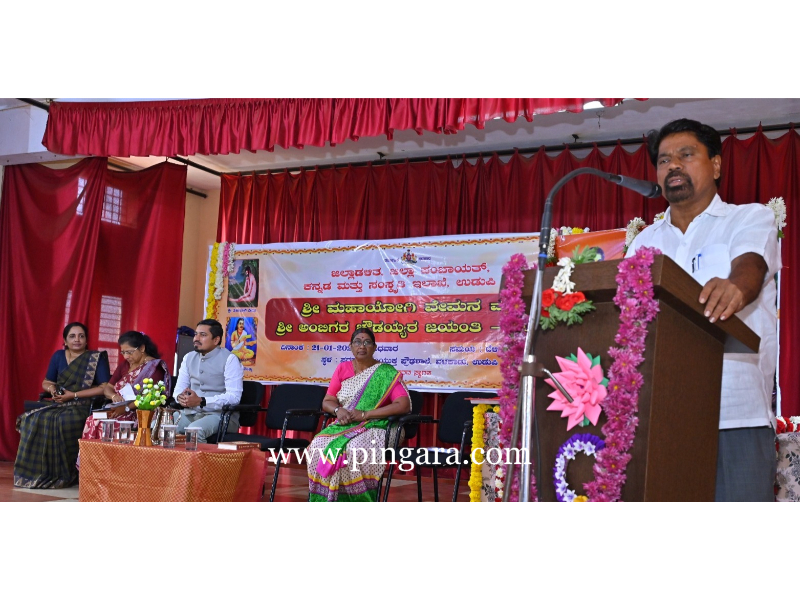 ಅವರು ನಗರದ ವಳಕಾಡು ಸರಕಾರಿ ಸಂಯುಕ್ತ ಪ್ರೌಢಶಾಲೆಯಲ್ಲಿ ಜಿಲ್ಲಾಡಳಿತ, ಜಿಲ್ಲಾ ಪಂಚಾಯತ್ ಹಾಗೂ ಕನ್ನಡ ಮತ್ತು ಸಂಸ್ಕೃತಿ ಇಲಾಖೆ ಉಡುಪಿ ಜಿಲ್ಲೆ ಇವರ ಸಂಯುಕ್ತ ಆಶ್ರಯದಲ್ಲಿ ನಡೆದ ಶ್ರೀ ಮಹಾಯೋಗಿ ವೇಮನ ಹಾಗೂ ಶ್ರೀ ಅಂಬಿಗರ ಚೌಡಯ್ಯರ ಜಯಂತಿ ಕಾರ್ಯಕ್ರಮವನ್ನು ಉದ್ಘಾಟಿಸಿ, ಮಹನೀಯರ ಭಾವಚಿತ್ರಕ್ಕೆ ಪುಷ್ಪಾರ್ಚನೆ ಸಲ್ಲಿಸಿ ಮಾತನಾಡುತ್ತಿದ್ದರು.