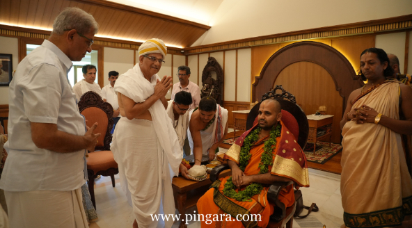ಹೆಗ್ಗಡೆಯವರ ನಿವಾಸದಲ್ಲಿ (ಬೀಡಿನಲ್ಲಿ) ಸ್ವಾಮೀಜಿಯವರ ಪಾದಪೂಜೆ ನಡೆಸಲಾಯಿತು.