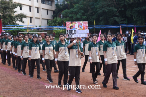 In her inspiring address, Shreema Priyadarshini shared her personal journey, highlighting how unwavering support and guidance helped her pursue her goals. She emphasized that success requires both hunger and determination, as this inner drive empowers one to overcome challenges and achieve greatness. Encouraging the students, she urged them to persevere and never give up, reminding that sports not only lead to victory but also reveal one’s true character when guided by the right mentorship. She concluded her speech by formally declaring the Annual Sports Meet 2025 open.