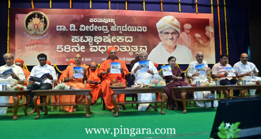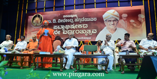 ಅವರು ಶುಕ್ರವಾರ ಧರ್ಮಸ್ಥಳದಲ್ಲಿ ಧರ್ಮಾಧಿಕಾರಿ ಡಿ. ವೀರೇಂದ್ರ ಹೆಗ್ಗಡೆಯವರ ಪಟ್ಟಾಭಿಷೇಕದ 58ನೇ ವರ್ಧಂತ್ಯುತ್ಸವ ಸಂದರ್ಭದಲ್ಲಿ ಆಶೀರ್ವಚನ ನೀಡಿದರು.