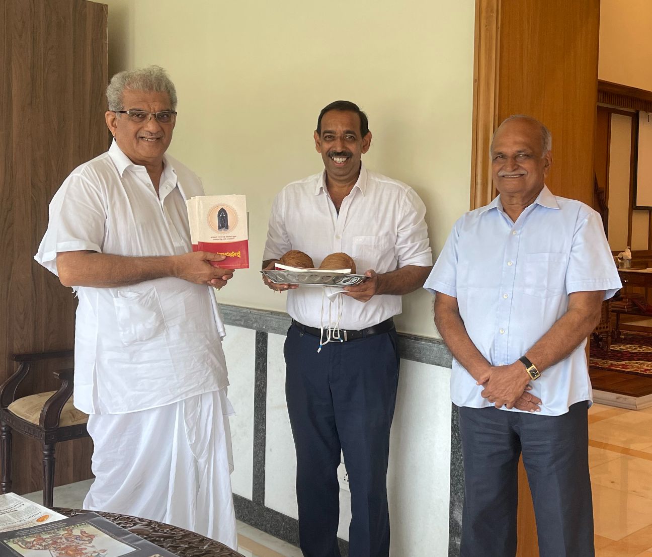 ಮೂಡಬಿದ್ರೆಯ 18 ಬಸದಿಗಳ ಮೊಕ್ತೇಸರ ಆನಡ್ಕ ದಿನೇಶ್ ಕುಮಾರ್ ಬುಧವಾರ “ದ್ವಾದಶಾನುಪ್ರೇಕ್ಷೆ” ಕೃತಿಯನ್ನು ಧರ್ಮಸ್ಥಳದಲ್ಲಿ ಧರ್ಮಾಧಿಕಾರಿ ಪೂಜ್ಯ ಶ್ರೀ ಡಿ. ವೀರೇಂದ್ರ ಹೆಗ್ಗಡೆಯವರಿಗೆ ಅರ್ಪಿಸಿದರು.
