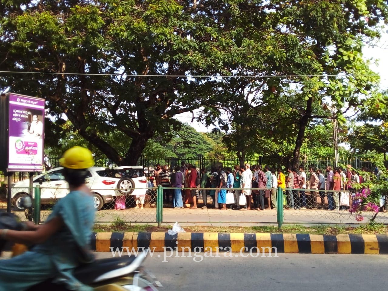 ಈಗೆಲ್ಲ ಬೆಳಿಗ್ಗೆ ಎಂಟು ಗಂಟೆಯ ಹೊತ್ತಿಗೆ ಮೈದಾನದ ಬದಿಯ ಕಾಲುಹಾದಿಯತ್ತ ಕಣ್ಣು ಹಾಯಿಸಿದರೆ ಅಲ್ಲಿ ನೂರಾರು ಜನ ಸಾಲಿನಲ್ಲಿ ನಿಂತಿರುತ್ತಾರೆ. ಸಾಮಾಜಿಕ ಅಂತರ ಇಲ್ಲ, ಹಸಿದವನು ಸಾಮಾಜಿಕ ಅಂತರ ಎಂದರೆ ಉಪವಾಸ ಸಮಾಜದ ಅಣಕ.