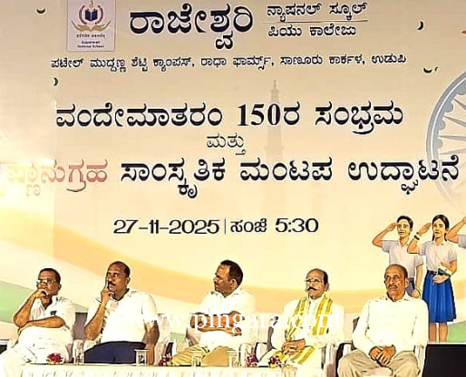 ಕಾರ್ಕಳ: ದೇಶಭಕ್ತಿಯ ಹಾಡನ್ನು ರಚಿಸಿ ಭಾರತಮಾತೆಯನ್ನು ಬಂಧನದಿಂದ ಬಿಡಿಸಲು ಪ್ರಯತ್ನಿಸಿದ ಬಂಕಿಮ ಚಂದ್ರರ ವಂದೇ ಮಾತರಂ ಸದಾ ಸ್ಮರಣೀಯ. ನಮಗೆ ನೆಲೆ, ಬೆಳೆ ನೀಡಿ ಅನುದಿನವೂ ಪೊರೆಯುತ್ತಿರುವ ಭೂಮಿ ತಾಯಿಯನ್ನು ನಾವೆಲ್ಲ ರಕ್ಷಿಸಬೇಕು ಎಂದು ತಮ್ಮ ಆಶೀರ್ವಚನದಲ್ಲಿ ಮೂಡುಬಿದಿರೆ ಜೈನ ಮಠದ ಚಾರುಕೀರ್ತಿ ಭಟ್ಟಾರಕ ಸ್ವಾಮೀಜಿ ಆಶಿಸಿದರು.