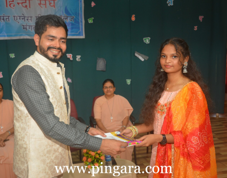 Sr Norine DSouza, Principal, Sr Janet Sequeira, Vice Principal, Dr P V Shobha, HOD of the Hindi Dept., Hindi lecturers Jeevan BR and Anitha G Shenoy, teaching and non-teaching staff along with the students were present on the occasion.