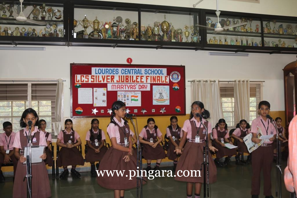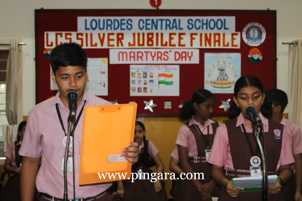 Mangalore: Martyrs' Day, also known as Shaheed Diwas, is observed in India on January 30 annually. The day is dedicated to pay homage to the courageous soldiers who sacrificed their lives for their motherland. In this regard the occasion was celebrated in Lourdes Central School and it was marked by the conduct of a special assembly by the students of the school.