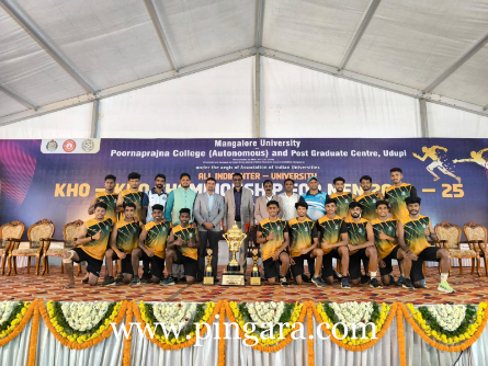 ಮೂಡುಬಿದಿರೆ: ಮಂಗಳೂರು ವಿಶ್ವವಿದ್ಯಾಲಯ ಹಾಗೂ ಉಡುಪಿಯ ಪೂರ್ಣಪ್ರಜ್ಞ ಕಾಲೇಜಿನ ಜಂಟಿ ಆಶ್ರಯದಲ್ಲಿ ನಡೆದ ಅಖಿಲ ಭಾರತ ಅಂತರ್ ವಿಶ್ವವಿದ್ಯಾನಿಲಯಗಳ ಪುರುಷರ ಖೋ-ಖೋ ಚಾಂಪಿಯನ್ಶಿಪ್ನ ಫೈನಲ್ ಪಂದ್ಯಾಟದಲ್ಲಿ ಮಂಗಳೂರು ವಿಶ್ವವಿದ್ಯಾನಿಲಯವು ಮುಂಬೈ ವಿಶ್ವವಿದ್ಯಾನಿಲಯದ ವಿರುದ್ಧ 11-10 ಅಂಕಗಳು ಹಾಗೂ 5 ನಿಮಿಷಗಳ ಅಂತರದಿಂದ ಗೆದ್ದು ಎರಡನೇ ಬಾರಿಗೆ ಚಾಂಪಿಯನ್ಸ್ ಆಗಿ ಹೊರಹೊಮ್ಮಿತು. ಮಂಗಳೂರು ವಿವಿ ಪ್ರತಿನಿಧಿಸಿದ ತಂಡದ ಒಟ್ಟು 15 ಆಟಗಾರರಲ್ಲಿ 13 ಆಟಗಾರರು ಆಳ್ವಾಸ್ ಕಾಲೇಜಿನ ವಿದ್ಯಾರ್ಥಿಗಳಾಗಿದ್ದರು. ಅಂಗಣದಲ್ಲಿ ಆಡಿದ 9 ಜನ ಆಟಗಾರರಲ್ಲಿ ಎಲ್ಲಾ ಆಟಗಾರರು ಆಳ್ವಾಸ್ ವಿದ್ಯಾರ್ಥಿಗಳಾಗಿದ್ದರು ಎಂಬುದು ಗಮನಾರ್ಹ ಅಂಶ.