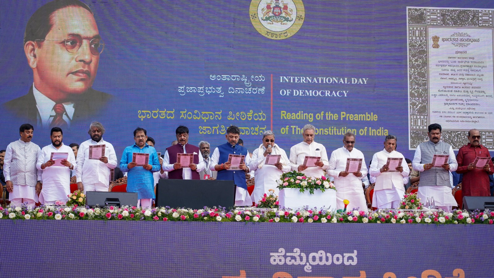ಅಂತರರಾಷ್ಟ್ರೀಯ ಪ್ರಜಾಪ್ರಭುತ್ವ ದಿನದ ಅಂಗವಾಗಿ ಕರ್ನಾಟಕ ಸರಕಾರವು ನಡೆಸಿದ ಭಾರತೀಯ ಸಂವಿಧಾನದ ಪ್ರಿಯಾಂಬ್ಲ್ ಓದುವಿಕೆಯಲ್ಲಿ ಜಗತ್ತಿನಾದ್ಯಂತ ಅಧಿಕೃತವಾಗಿ 2,31,66,401 ಮಂದಿ ಭಾಗವಹಿಸಿದರು ಎಂದು ತಿಳಿದು ಬಂದಿದೆ.