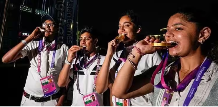 ಚೀನಾ ಜನ ಪ್ರಜಾಪ್ರಭುತ್ವದ ಹಾಂಗ್ಜೌನಲ್ಲಿ ನಡೆಯುತ್ತಿರುವ ಏಶಿಯನ್ ಕ್ರೀಡಾಕೂಟ 19ರಲ್ಲಿ ಭಾರತವು ಮೂರು ತಂಡ ಚಿನ್ನಗಳನ್ನು ಗಳಿಸಿತು. 1982ರಲ್ಲಿ ದಿಲ್ಲಿಯಲ್ಲಿ ನಡೆದ ಏಶಿಯನ್ ಗೇಮ್ಸ್ನಲ್ಲಿ ಭಾರತ ಕುದುರೆ ಸವಾರಿ ಚಿನ್ನ ಗೆದ್ದಿತ್ತು. 41 ವರುಷಗಳ ಬಳಿಕ ಸುದೀಪ್ತಿ ಹಜೇಲಾ, ದಿವ್ಯಾಕೃತಿ ಸಿಂಗ್, ಹೃದಯ್ ವಿಪುಲ್ ಚೇಡಾ, ಅನುಶ್ ಅಗರ್ವಾಲ್ ಅವರುಗಳು ಈಕ್ವೆಸ್ಟ್ರಿಯನ್ ಡ್ರೆಸ್ಸೇಜ್ನಲ್ಲಿ ಸ್ವರ್ಣ ಗಳಿಸಿದರು.
