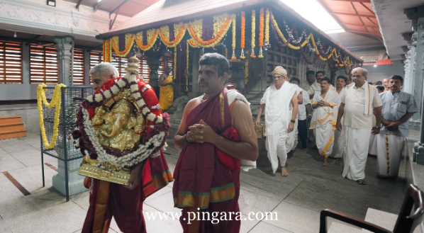ಅಲ್ಲಿ ಮಧ್ಯಾಹ್ನ ಗಣಹೋಮ, ಮಹಾಪೂಜೆ ಹಾಗೂ ಸಂಜೆಯ ಪೂಜೆ ನೆರವೇರಿಸಿ ಪೂಂಜಾಲಕಟ್ಟೆಯಲ್ಲಿ ಸೇವಾ ಬಯಲಾಟ ಪ್ರದರ್ಶನದ ಸ್ಥಳಕ್ಕೆ ಭವ್ಯ ಮೆರವಣಿಗೆಯಲ್ಲಿ ಕೊಂಡು ಹೋಗಲಾಯಿತು.