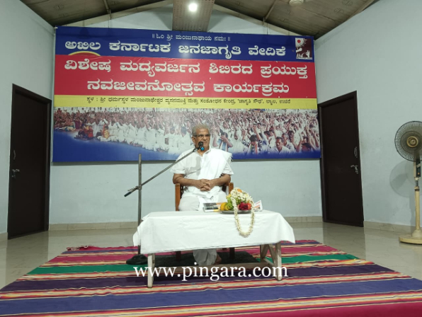 ಕುಡಿತ ಬಿಡಬೇಕಾದರೆ ಬಾಹ್ಯ ಒತ್ತಡಕ್ಕಿಂತ ಆಂತರಿಕ ಒತ್ತಡ ಬಹಳ ಮುಖ್ಯ”ಎಂದುಶ್ರೀ ಕ್ಷೇತ್ರ ಧರ್ಮಸ್ಥಳದ ಧರ್ಮಾಧಿಕಾರಿ ಡಾ| ಡಿ. ವೀರೇಂದ್ರ ಹೆಗ್ಗಡೆಯವರು ಉಜಿರೆ ಲಾೈಲದ ಶ್ರೀ ಧರ್ಮಸ್ಥಳ ಮಂಜುನಾಥೇಶ್ವರ ವ್ಯಸನಮುಕ್ತಿ ಮತ್ತು ಸಂಶೋಧನಾ ಕೇಂದ್ರದಲ್ಲಿ ನಡೆಯುತ್ತಿರುವ 260ನೇ ವಿಶೇಷ ಮದ್ಯವರ್ಜನ ಶಿಬಿರದ ಶಿಬಿರಾರ್ಥಿಗಳನ್ನು ಉದ್ದೇಶಿಸಿ ಮಾತನಾಡಿದರು.“ದುಶ್ಚಟಕ್ಕೊಳಗಾದವರನ್ನು ಮನಪರಿವರ್ತನೆ ಮೂಲಕ ವ್ಯಸನಮುಕ್ತಿಗೊಳಿಸಲು ಸಾಧ್ಯ ಎಂಬುದನ್ನು ವೇದಿಕೆಯ ಮದ್ಯವರ್ಜನ ಶಿಬಿರಗಳು ತೋರಿಸಿಕೊಟ್ಟಿವೆ. ದುಶ್ಚಟದ ಬಲೆಗೆ ಬಿದ್ದು, ಬದುಕಿನಲ್ಲಿ ಭರವಸೆಯನ್ನು ಕಳಕೊಂಡ ಸಾವಿರಾರು ಕುಟುಂಬಗಳು ಮದ್ಯವರ್ಜನ ಶಿಬಿರಗಳಿಂದಾಗಿ ಕುಟುಂಬದಲ್ಲಿ ಪ್ರೀತಿ, ವಿಶ್ವಾಸ ನೆಮ್ಮದಿಯಿಂದ ಬದುಕಲು ಸಾಧ್ಯವಾಗಿದೆ” ಎಂದು ಅವರು ತಿಳಿಸಿದರು. ಶಿಬಿರದಲ್ಲಿ 48 ಮಂದಿ ಭಾಗವಹಿಸಿದ್ದರು. ಈ ಸಂದರ್ಭದಲ್ಲಿ ಶ್ರೀ ಕ್ಷೇತ್ರ ಧರ್ಮಸ್ಥಳ ಗ್ರಾಮಾಭಿವೃದ್ಧಿ ಯೋಜನೆಯ ಟ್ರಸ್ಟಿಗಳಾದ ಡಾ. ಹರೀಶ್ ಕೃಷ್ಣಸ್ವಾಮಿ ಉಪಸ್ಥಿತರಿದ್ದರು.