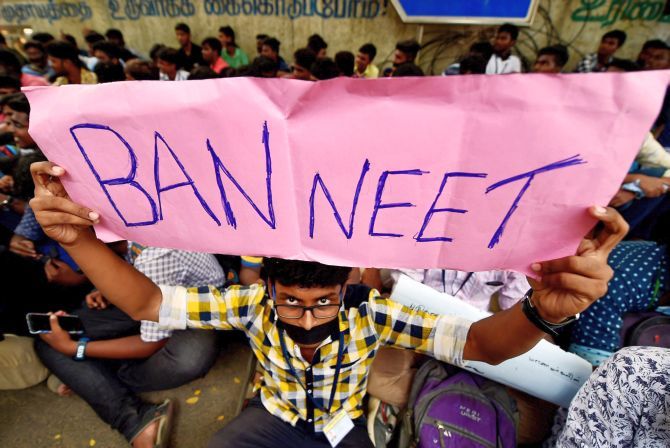 ಉತ್ತರ ಭಾರತದ ಟ್ಯೂಶನ್ ಮಾಫಿಯಾಗಳು ನಿರ್ವಹಿಸುತ್ತಿರುವ ನೀಟ್ ಪರೀಕ್ಷೆಯಿಂದ ಅರ್ಹತೆ ಇರುವವರಿಗೆ ಸೀಟು ಸಿಗದೆ ಕಳ್ಳ ಹಣ ನೀಡುವವರಿಗೆ ವೈದ್ಯಕೀಯ, ದಂತ ವೈದ್ಯಕೀಯ ಸೀಟು ಮಾರಲಾಗುತ್ತಿದೆ ಎಂದು ರಾಜ್ಯದ ಎಲ್ಲ ಕಡೆ ಪ್ರತಿಭಟನೆ ಪ್ರಾರಂಭವಾಗಿದೆ.