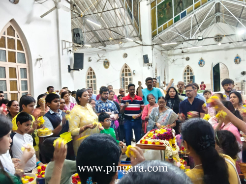 Bangalore: Third day of Novena began with showering flowers on infant Mary at Our lady of Fathima Church Jalahalli, Bangalore.