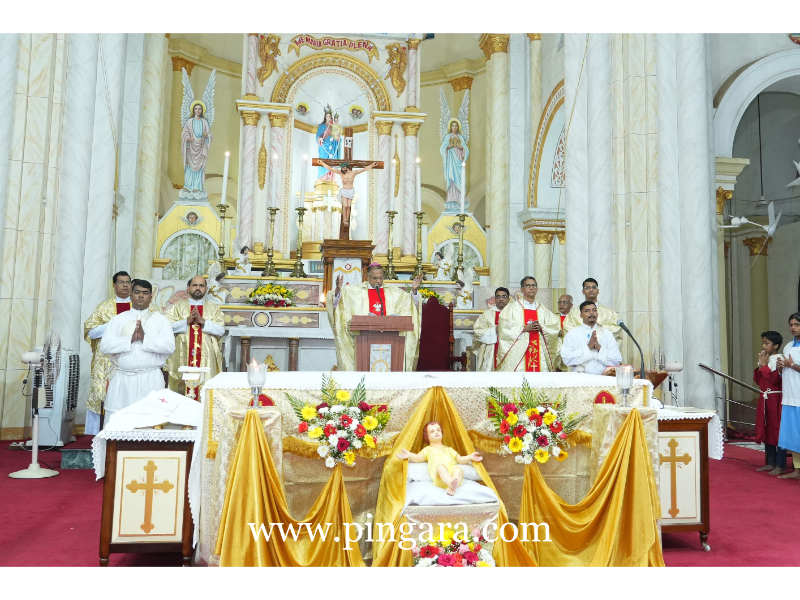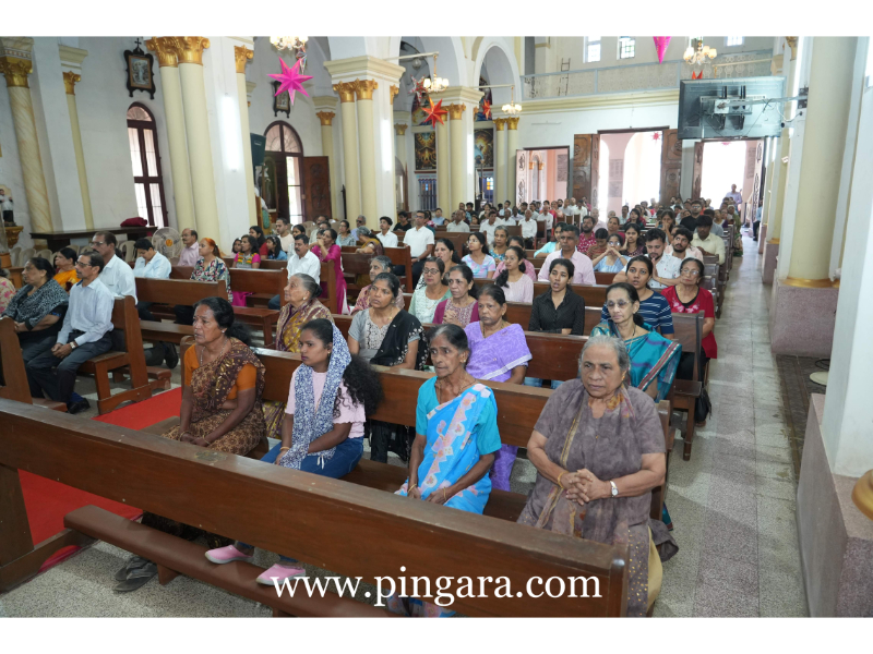 Most Rev. Dr Peter Paul Saldanha, Bishop of Mangalore, presided over the stational Mass. He was joined by concelebrants Vicar General Very Rev. Msgr. Maxim L. Noronha, Very Rev. Fr Daniel Veigas OP (Episcopal Vicar for Religious), Very Rev. Fr Naveen Pinto (Judicial Vicar and Coordinator of Pastoral Commissions), Fr Valerian D’Souza (Parish Priest, Rosario Cathedral), Fr Santhosh Rodrigues (Director, Pastoral Centre), Fr Rudolf Ravi D’Sa (Vicar Forane, Pezar), Fr Anil Ivan Fernandes (Director, CCC), Fr J.B. Crasta (Director, St Antony Ashram), Fr Valerian Fernandes, and Fr Jason Lobo.