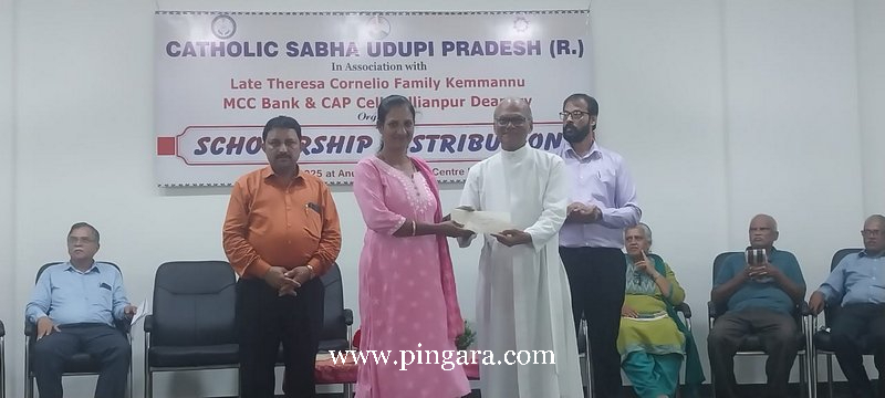 He was speaking during the Scholarship distribution ceremony organized under the leadership of Catholic Sabha Udupi Pradesh along in association with Late Theresa Cornelio Family Kemmannu, MCC Bank and CAP Cell Kallianpur deanery held at Anugraha Pastoral Centre, Kakkunje, said that the donating person’s hand is always in good smell. It could be anything as long as a good heart is shown for the community, something great. He called the students to make use of the opportunity provided by donors and build up your future. Do not stop studying. To build your future, you must remain dedicated to your studies. This commitment provides the foundation for personal growth, career advancement and achieving your long term goals.