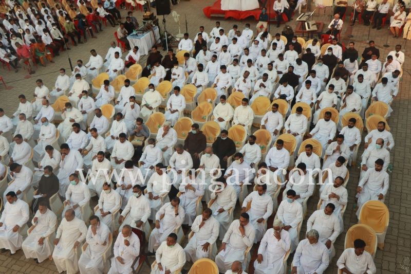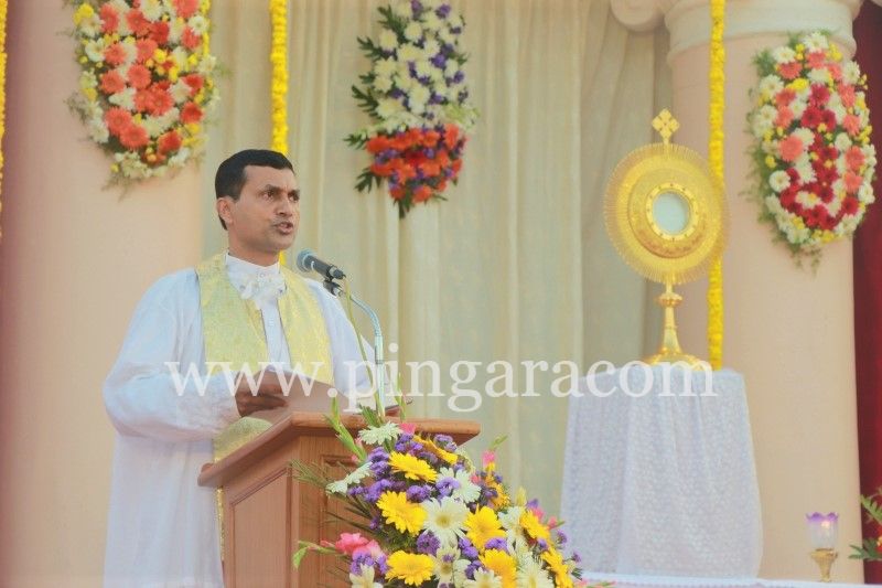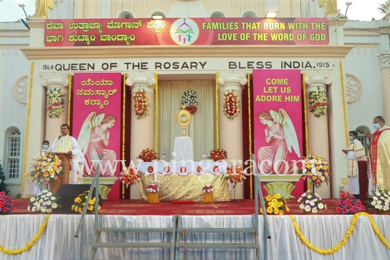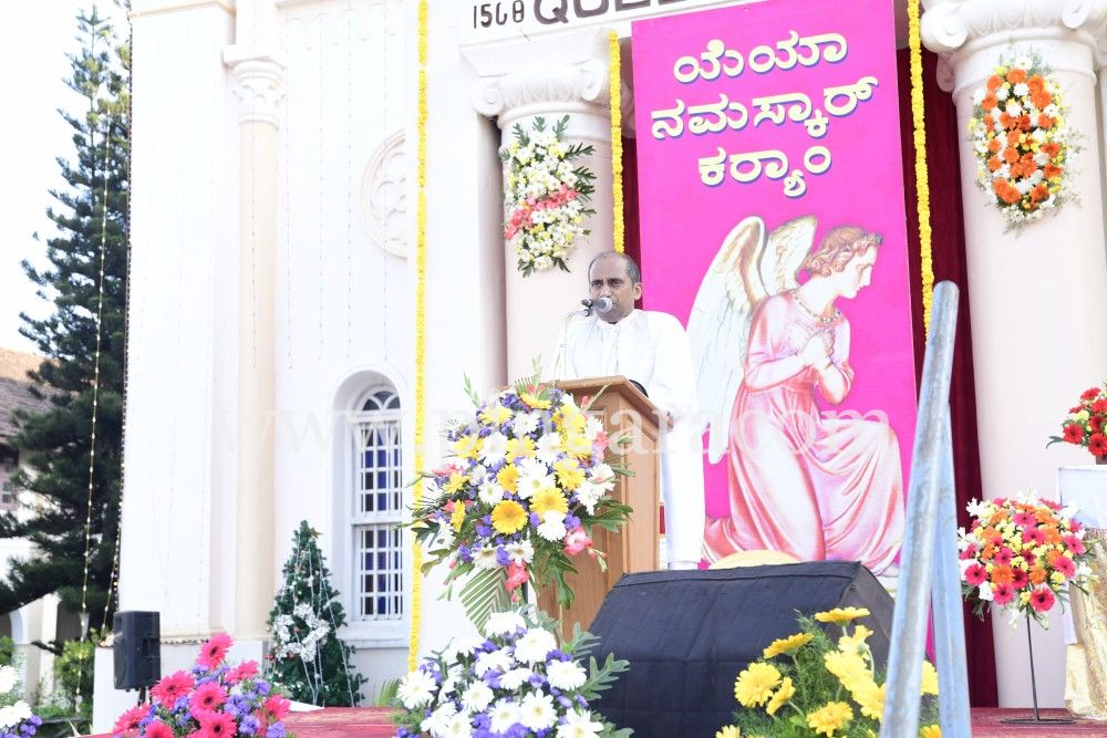 Rev. Dr Vincent Sequeira, Director of Diocesan Biblical Commission and the Assistant Director of Mangala Jyothi, preached a homily at the Rosario Cathedral grounds. He elaborated on the theme, “Families burning with the love of the Word of God”, and brought out the close relationship between the Word of God and the Christian family.