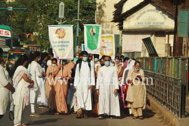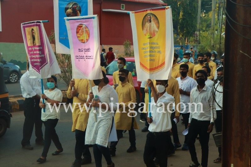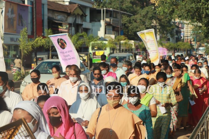 Mangaluru, Jan 02: After a long gap of two years, Catholics in Mangalore partook in a solemn Eucharistic procession held on Sunday January 2, 2022, from Milagres Church to Rosario Cathedral observing all Covid guidelines laid down by the government.