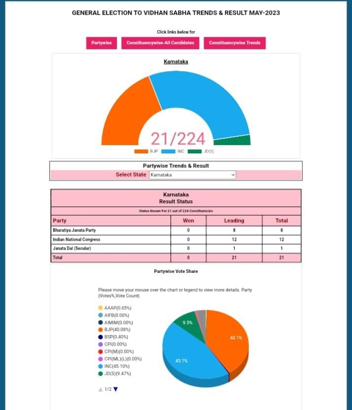 Mangalore: As per present trend of vote sharing congress leading with 45% votes share and BJP 40% vote share in Karnataka results of election for Assembly 2023