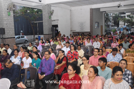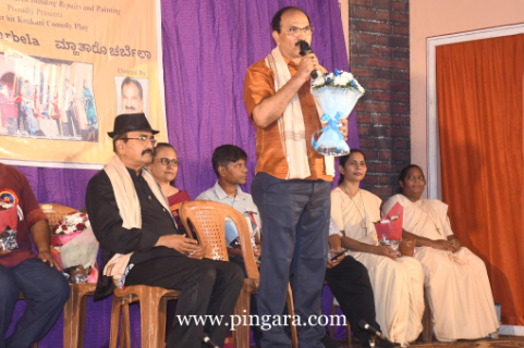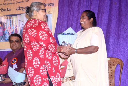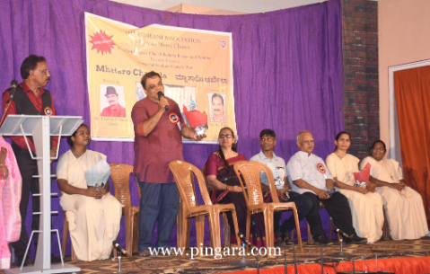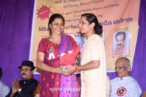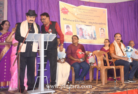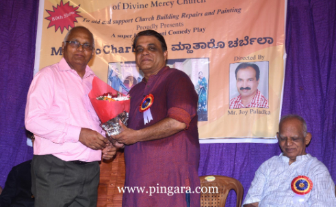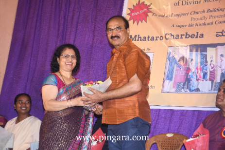 Divine Mercy Church Parish Priest Rev. Rev. Fr. Allwyn Nazareth felicitated to Senior Konkani artist Francis Fernandes Cascia and theater director Joy Paladka and Congratulations to them. Rev. Fr. Michael D'souza, Fr. Maria Anthony Pathinathan (CPPS), Nuns Sr. Rachel Laharia, Sr. Kiran Ekka, Sr. Neelam Lakra was present on stage.