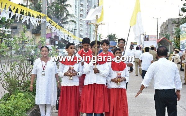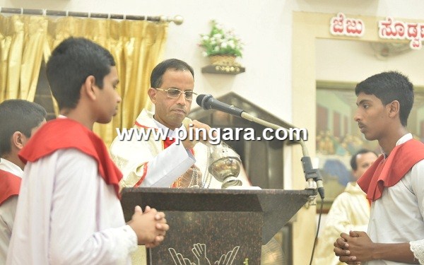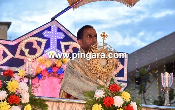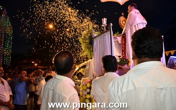 After the mass a solemn procession bearing the Holy Sacrament and various tableaux along with the parishioners set forth from the church premise to Konchady via Kuntikan and back to the church. The choir of Most Holy Redeemer Church sang hymns in praise of the Almighty. Hymns were sung in Konkani, English, Hindi and Kannada. The procession with parishioners clad in white and with candles in the hand indeed sent across the message of peace and solidarity that the Catholic Church believes and upholds. After the procession a short prayer service was conducted by Fr. Joseph Martis.