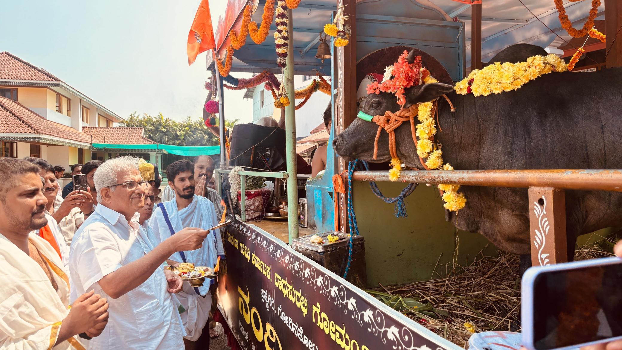 ಉಜಿರೆ: ನಂದಿ ರಥ ಮಂಗಳವಾರ ಧರ್ಮಸ್ಥಳಕ್ಕೆ ಆಗಮಿಸಿದಾಗ ಭವ್ಯ ಸ್ವಾಗತ ಕೋರಲಾಯಿತು.