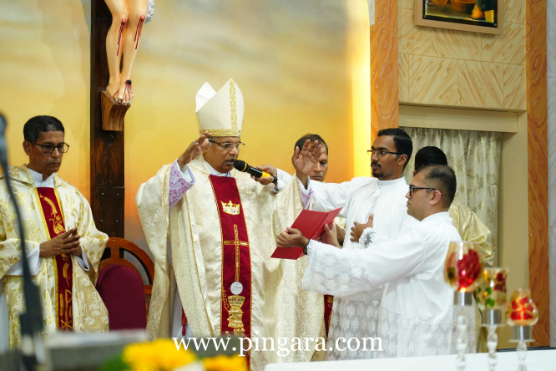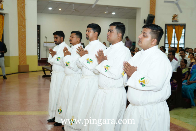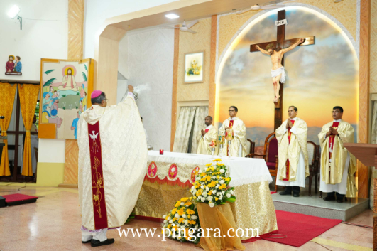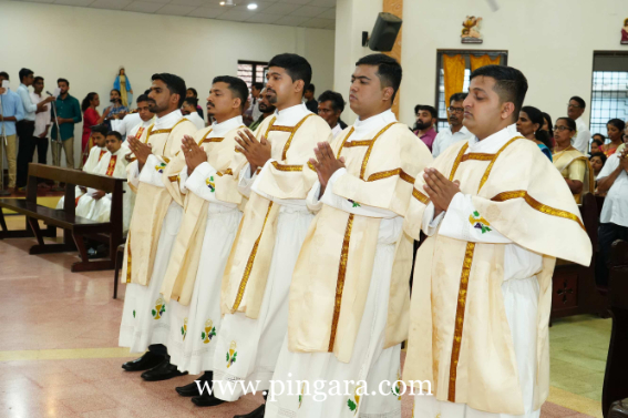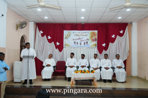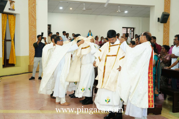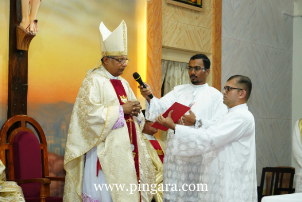 Bishop Peter Paul Saldanha was the main celebrant of the Eucharistic celebration and the ordaining prelate. He was joined by a large number of concelebrants, including Msgr. Lawrence Maxim Noronha, the Vicar General of the Diocese; Rev. Dr. Rajesh Rosario, the Rector of St. Joseph Seminary; Fr Santhosh Rodrigues, Director Pastorla Centr along with seminary staff, and diocesan priests.