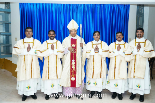 Mangaluru: In a solemn and joy-filled ceremony, five brothers were ordained to the Sacred Order of Deacons for the Diocese of Mangalore by the Most Rev. Dr. Peter Paul Saldanha, Bishop of Mangalore. The sacred rite took place on Tuesday, October 14, 2025, at 3:30 p.m. in the Chapel of St. Joseph Interdiocesan Seminary, Jeppu.