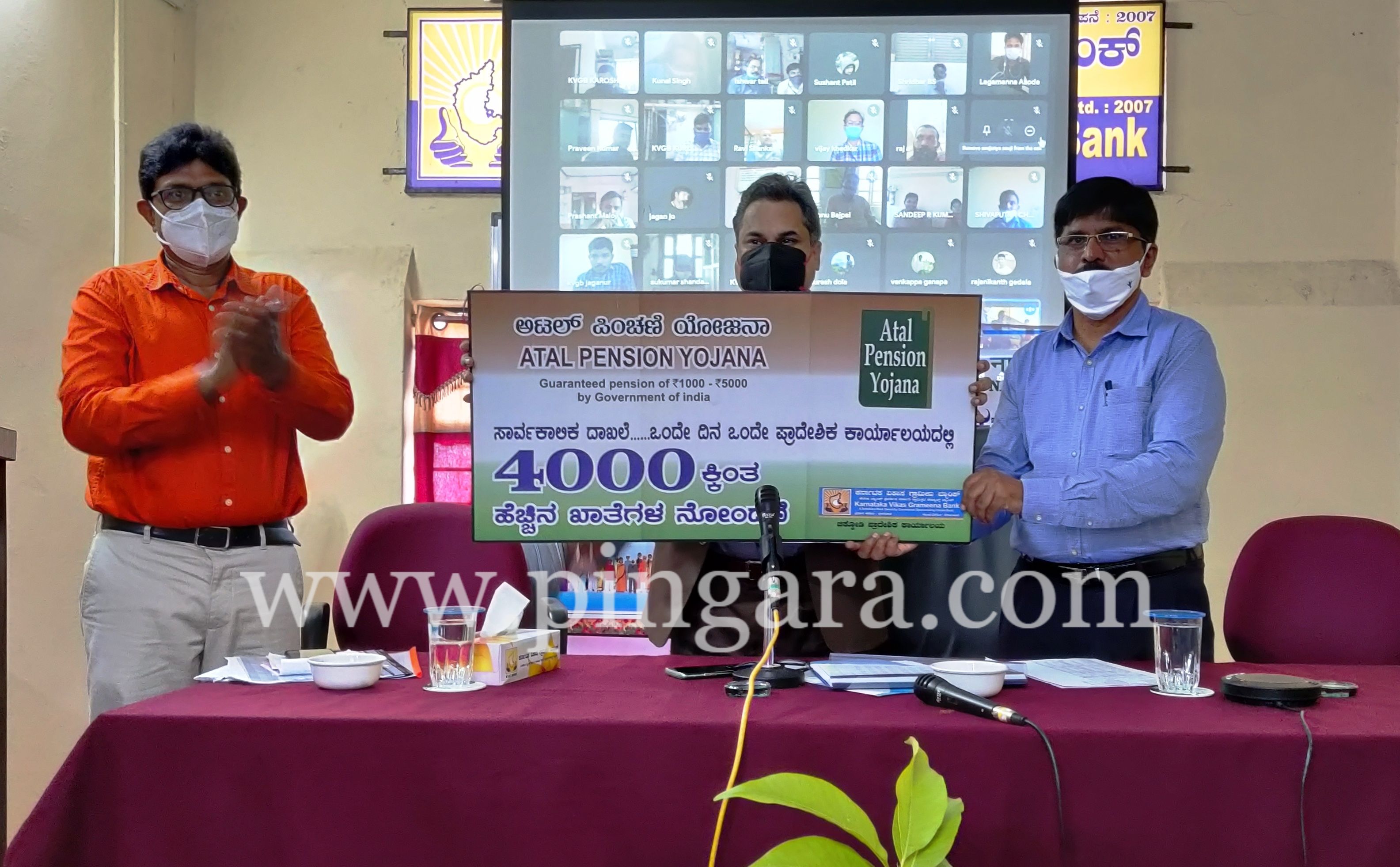 Mangaluru, Sept 01: Karnataka Vikas Grameena Bank (KVGB) sponsored by Canara Bank, has set a new record by enrolling 4125 Accounts under Atal Pension Yojana (APY) in a single day. The Bank has 10 Regional Offices in its service area of nine districts including Managaluru and the Chikodi Regional Office of the Bank has made this achievement on Tuesday, said Gopi Krishna, Chairman of the Bank.