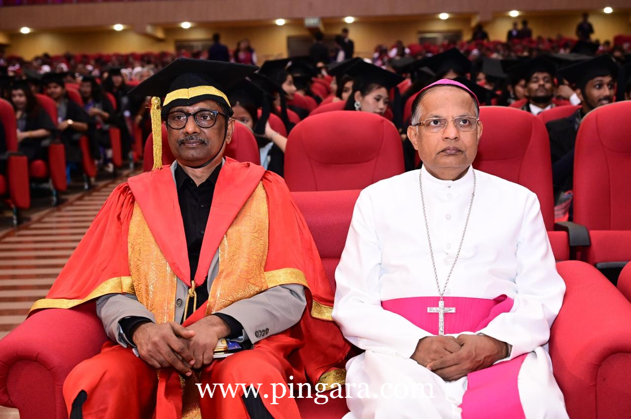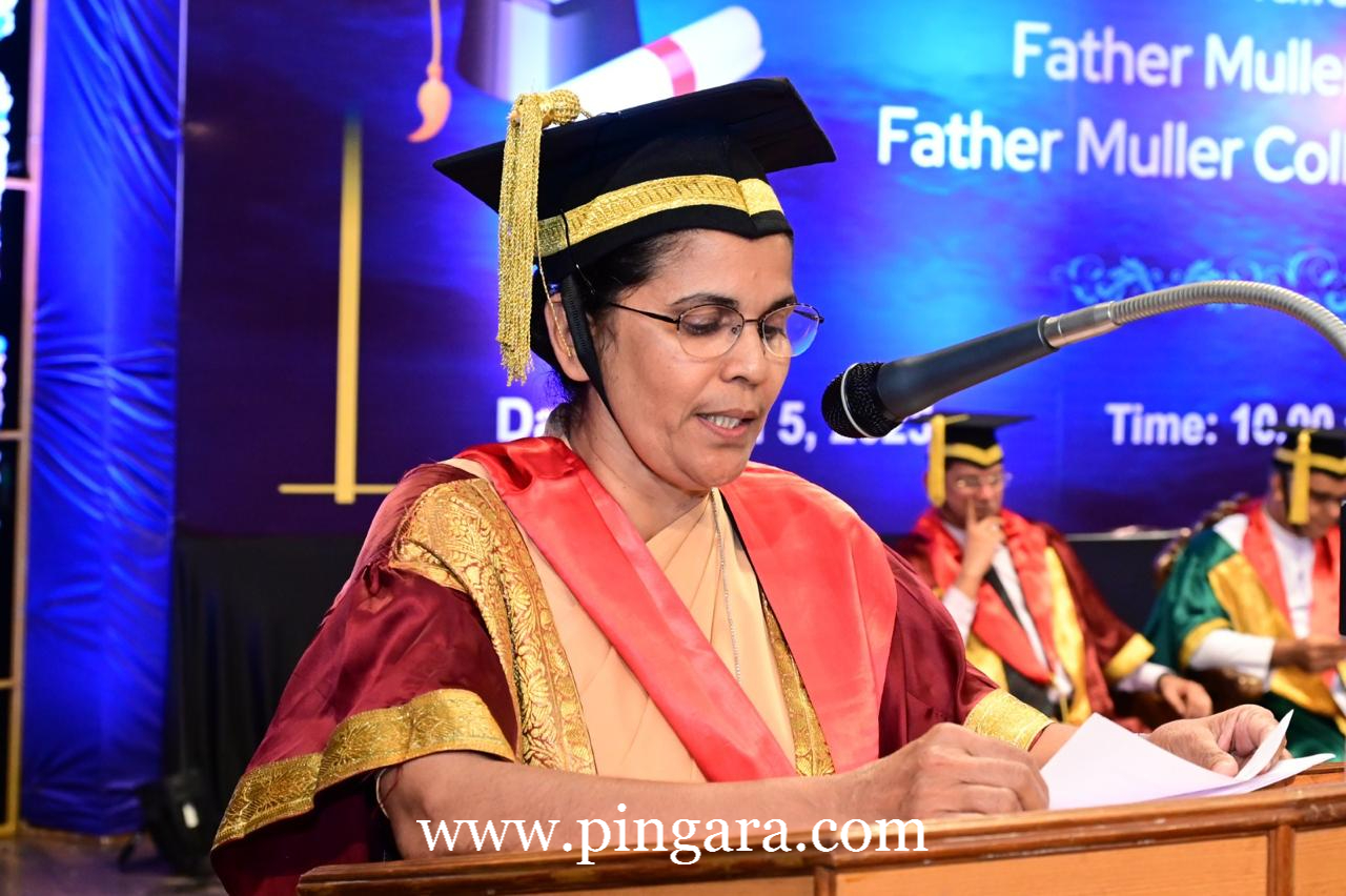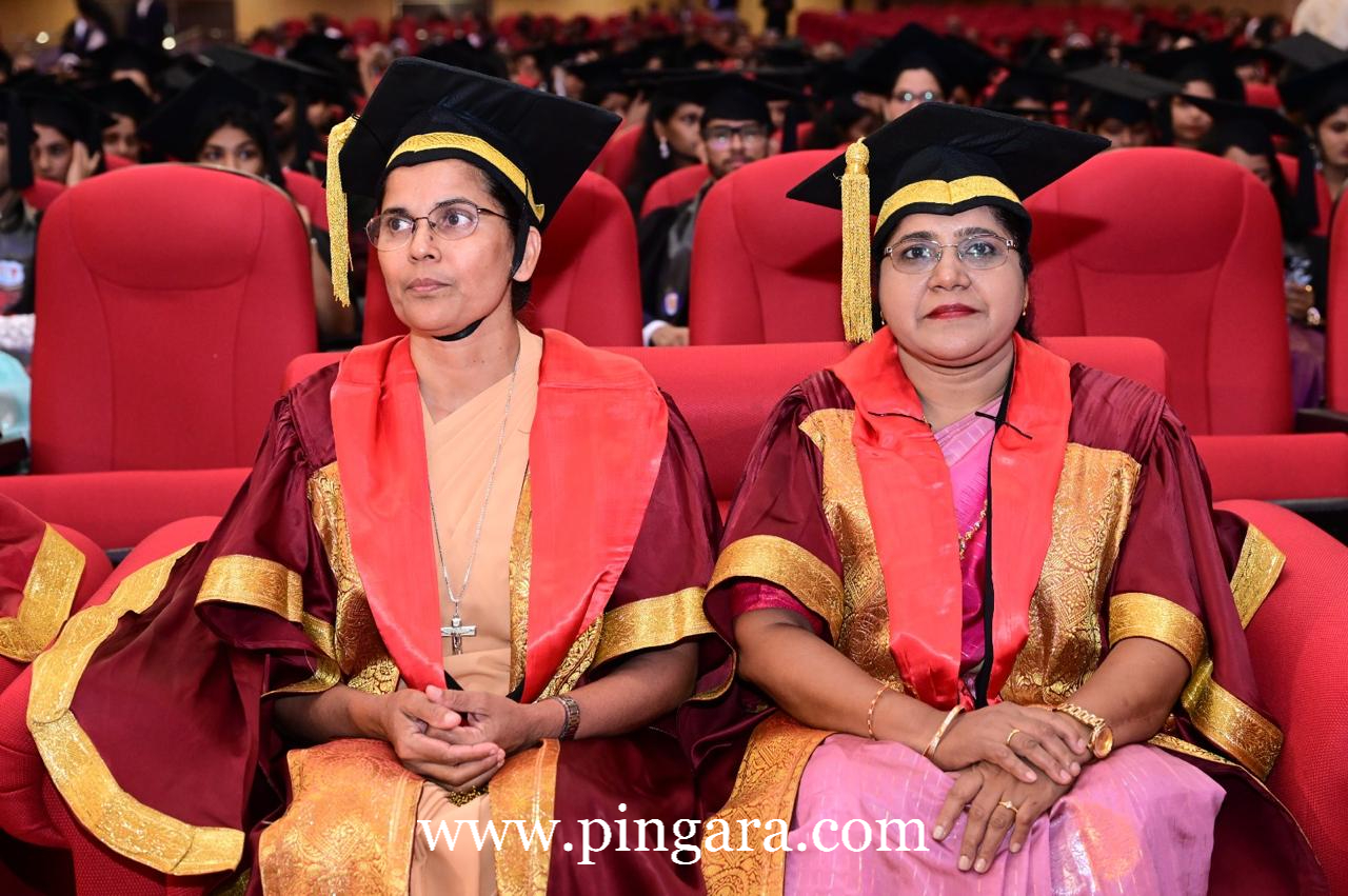 Following the grand procession and invocation, Rev. Fr Richard Aloysius Coelho delivered a warm and welcoming address. Highlighted the importance of being the hands and feet of God as told by St Teresa of Avila "Christ has no body now but yours, no hands, no feet on earth but yours. Yours are the eyes with which He looks compassion on this world, yours are the feet with which He walks to do good, yours are the hands with which He blesses all the world. He urged the Nursing and Speech and Hearing Graduates to be torch bearers of the Institutions.